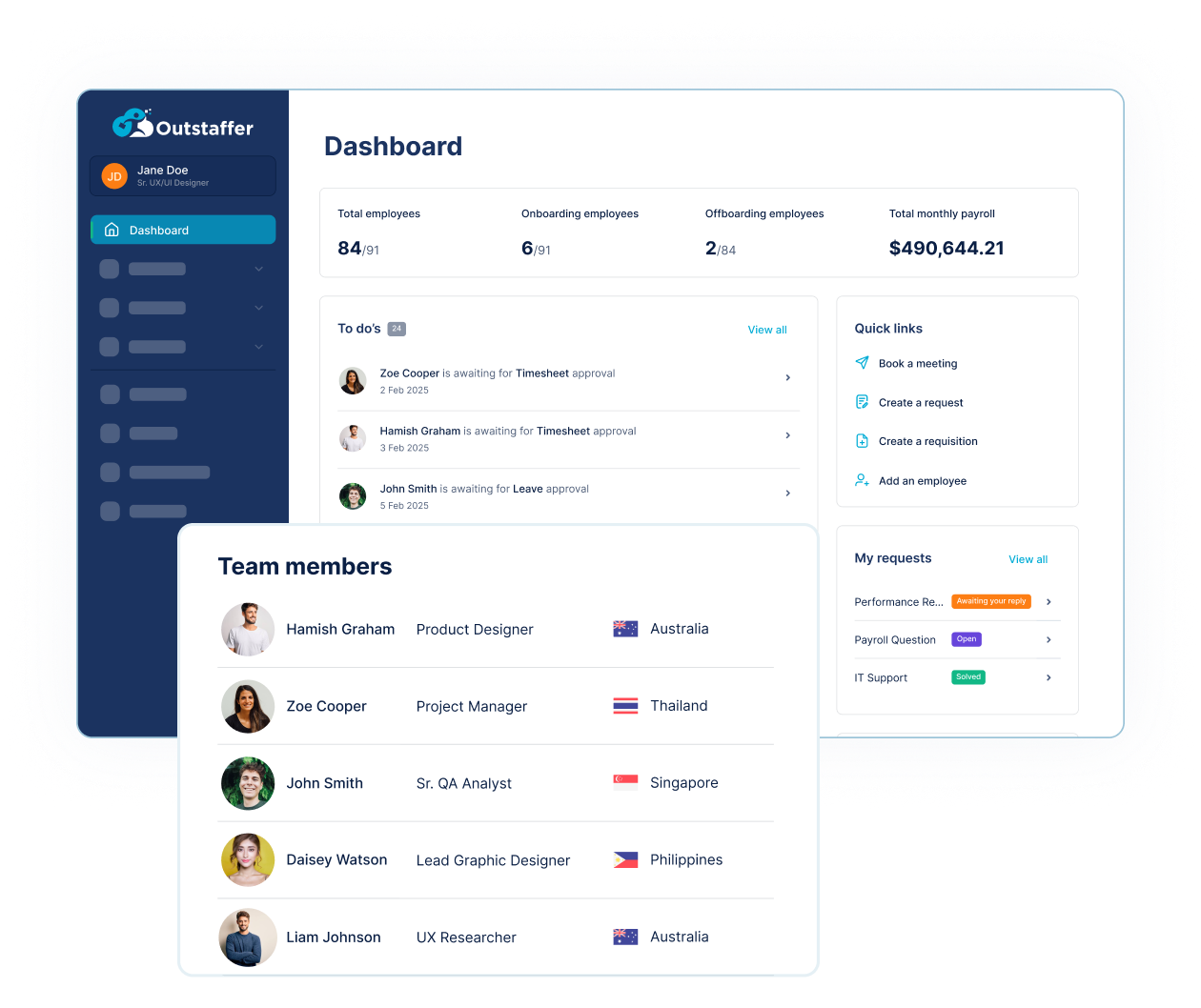 Outstaffer’s Borderless HRIS is your free, all-in-one platform to hire, onboard, and manage your own employees at home or around the world. No setup fees. No per-seat costs. Just secure, compliant, and effortless HR management — built for Australian and global teams.